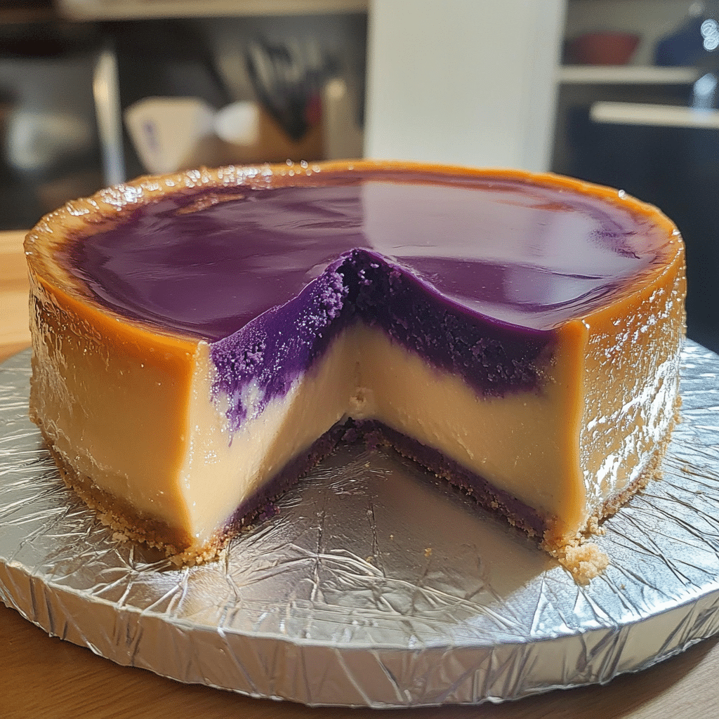 If you’re looking for a dessert that’s both stunning and delicious, Ube Leche Flan Cake is the perfect choice. This Filipino-inspired cake is a beautiful fusion of rich, velvety leche flan (a caramel-flavored custard) and ube (purple yam), creating a multi-layered treat that will have everyone at the table reaching for seconds. Not only is it a feast for the taste buds, but the deep purple hue of ube makes it a showstopper, guaranteed to steal the spotlight at any gathering.